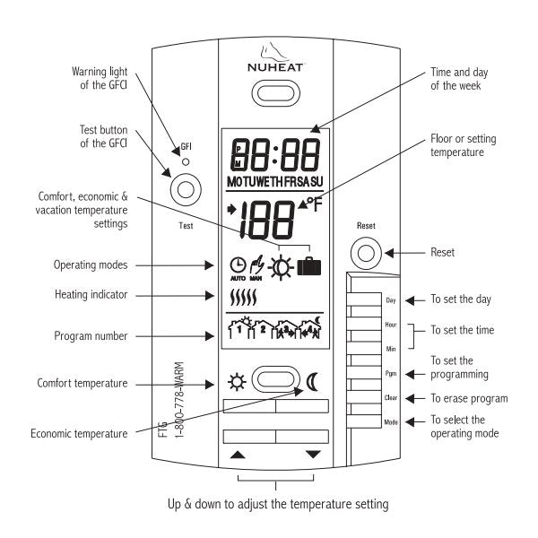 Replacement thermostat shown is the Nuheat SIGNATURE WiFi Enabled Programmable Thermostat