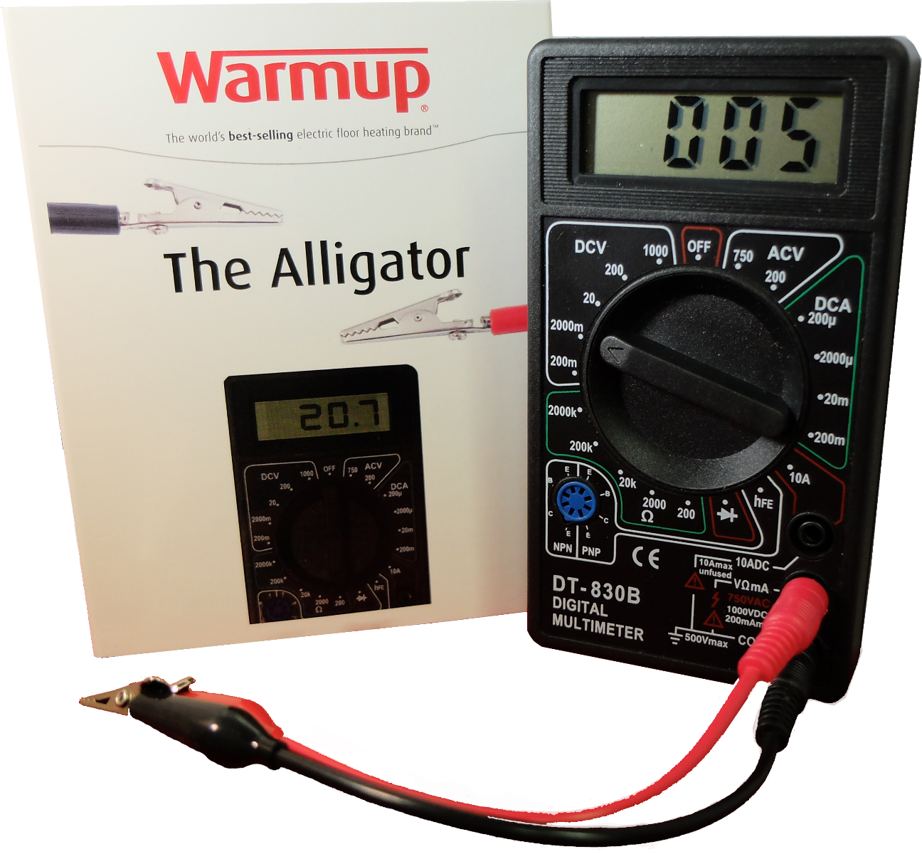 The Alligator is a meter with six-inch alligator clips that you attach to the heating elements power lead allowing the constant monitoring of the heating cable.